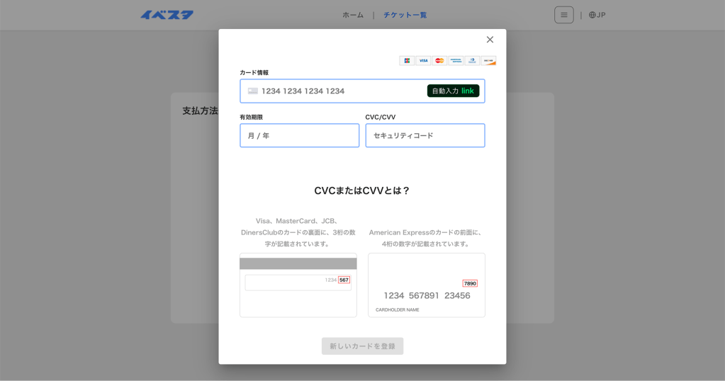 完了後、新しいカードを登録ボタンを押下します。