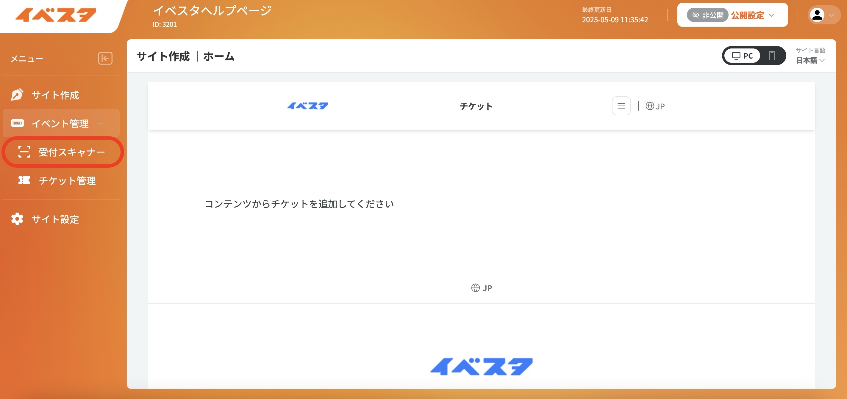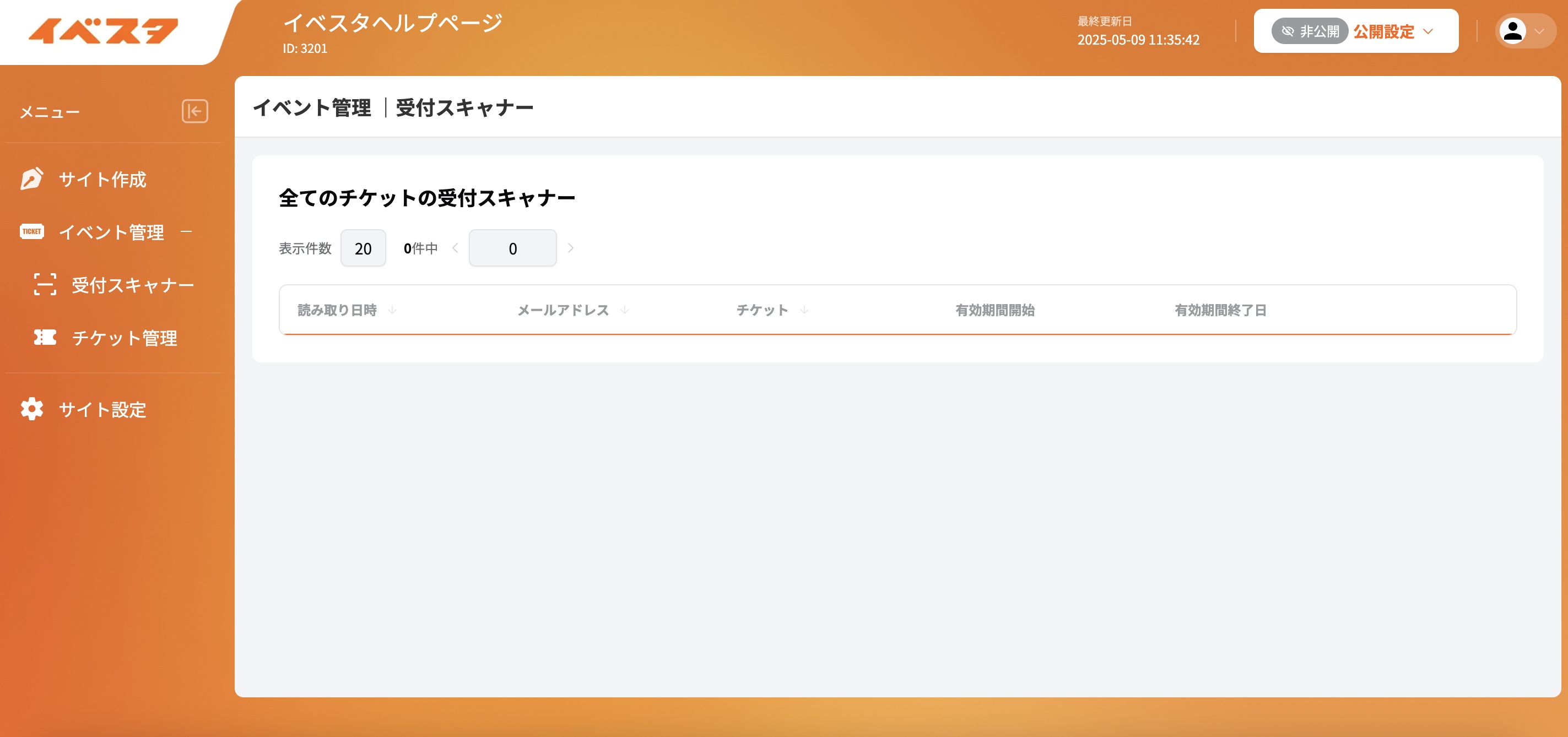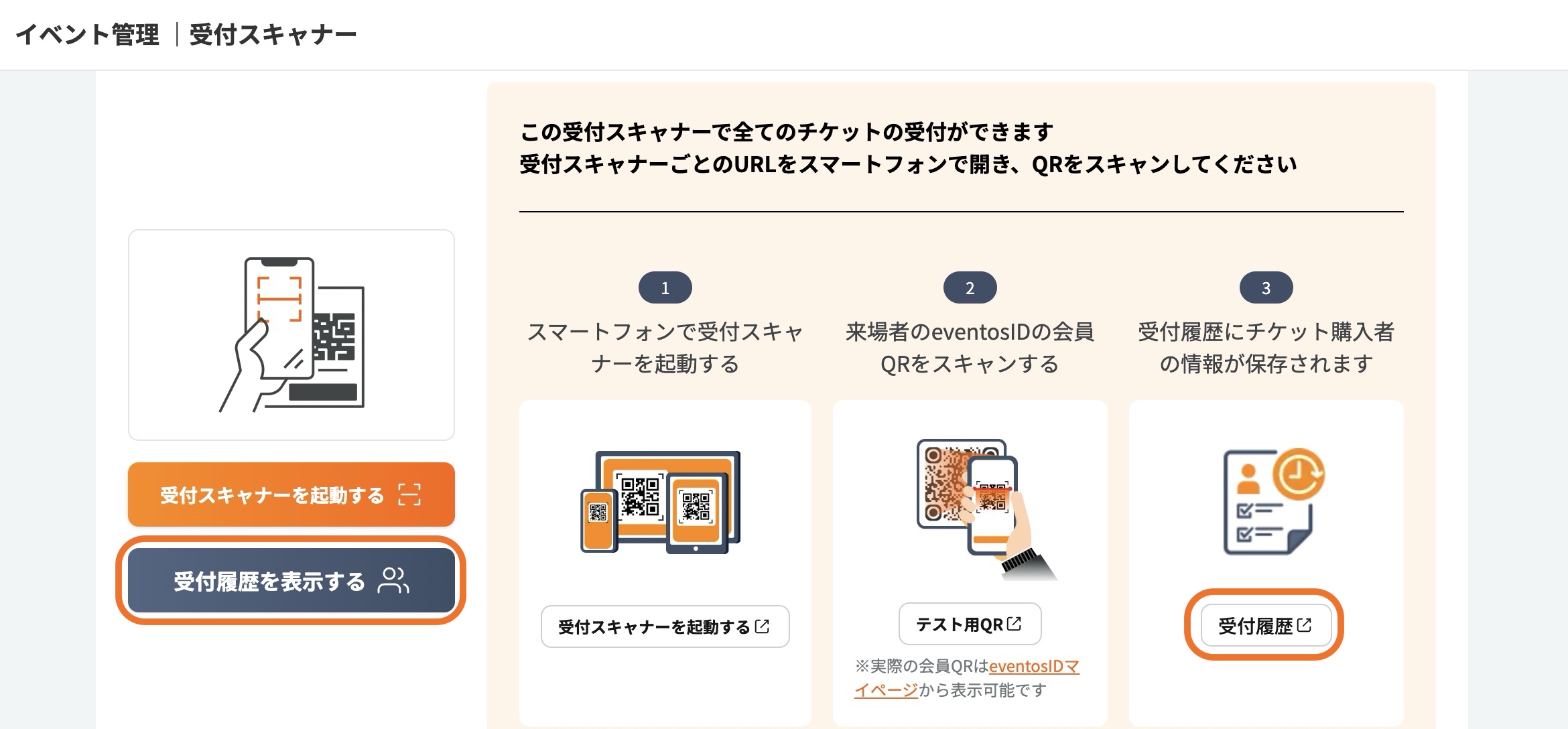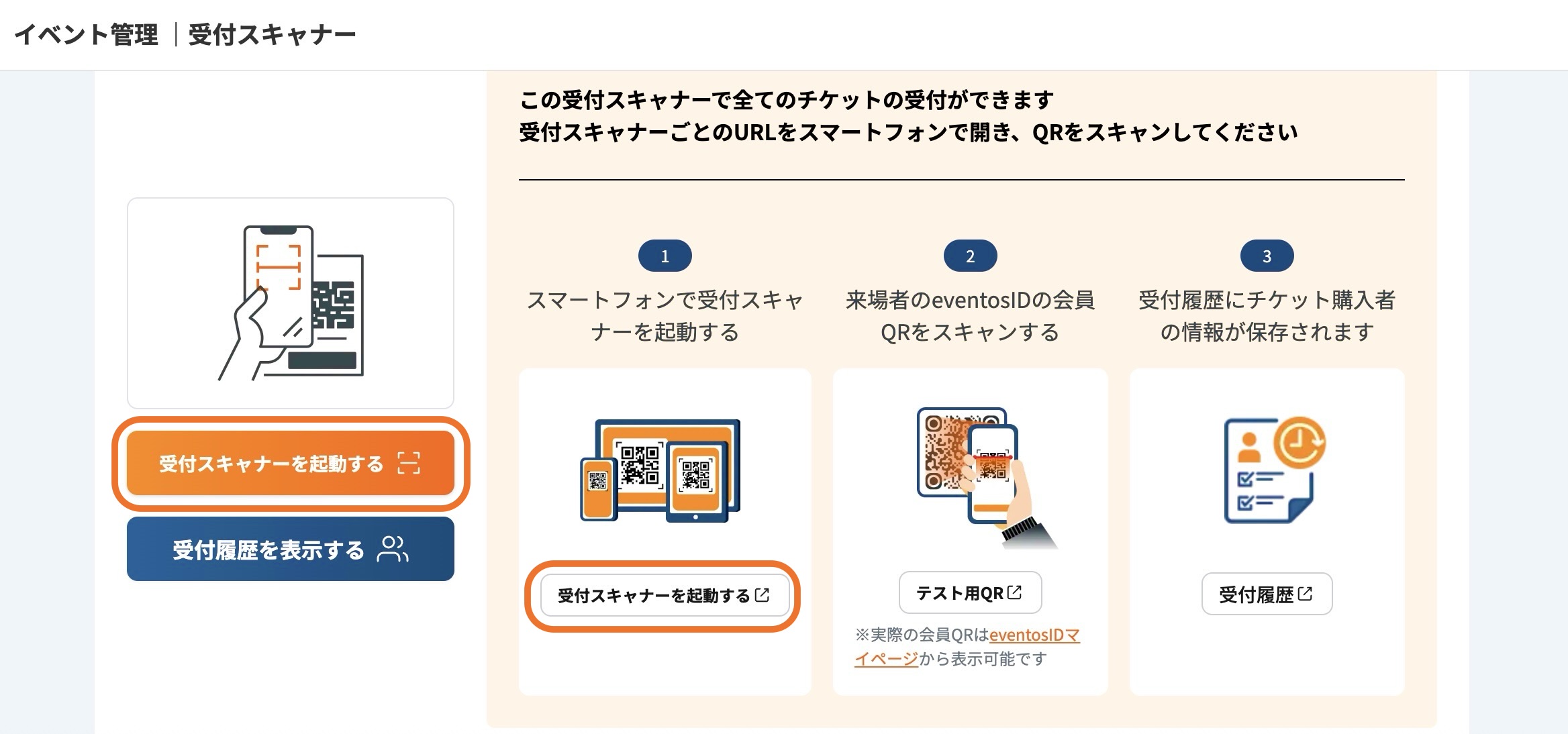 イベント管理メニューの『受付スキャナー』ボタンを押します。