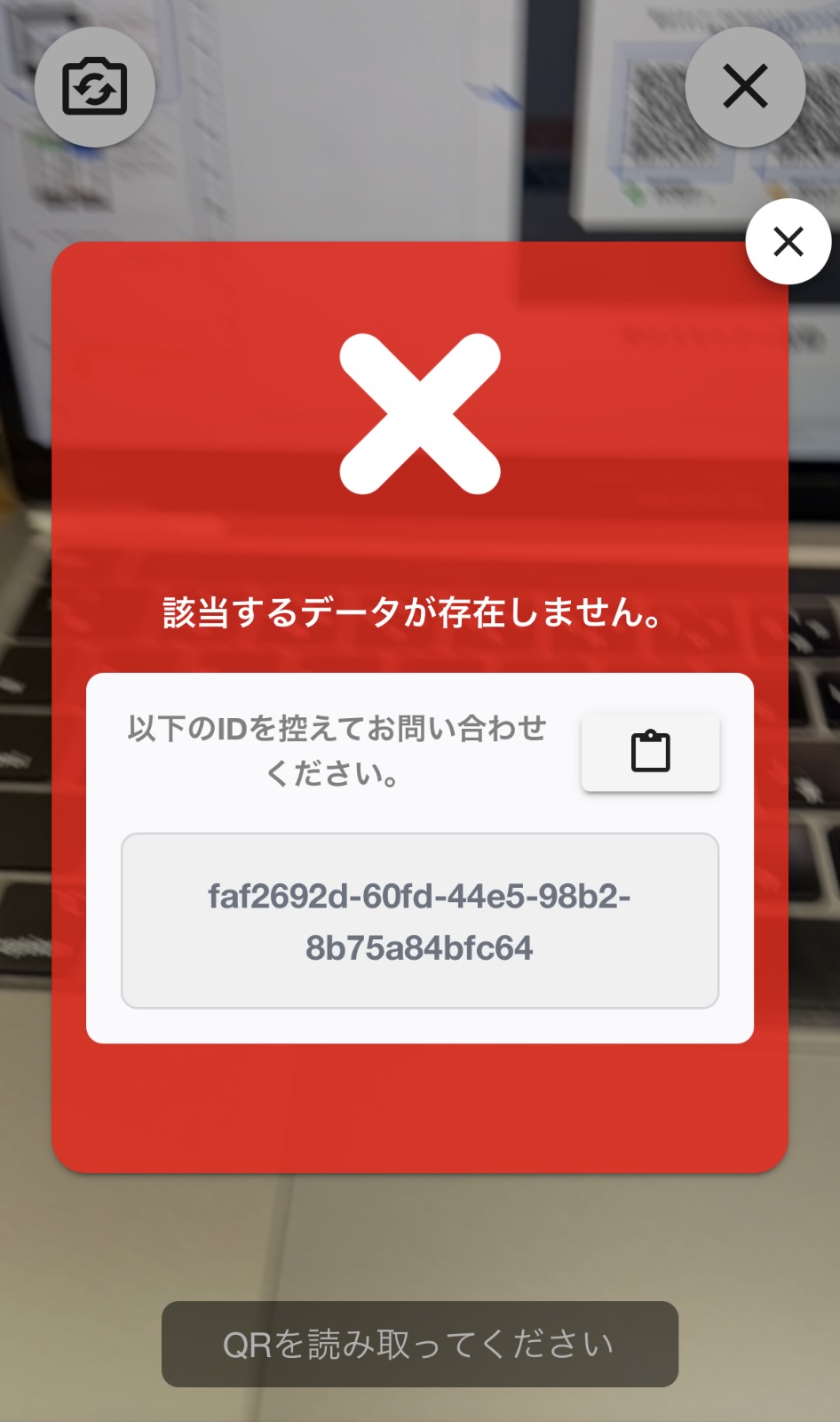 来場者がチケットを所持していない場合、またはQRコードが無効な場合、下の画像のようなエラーが表示されます。